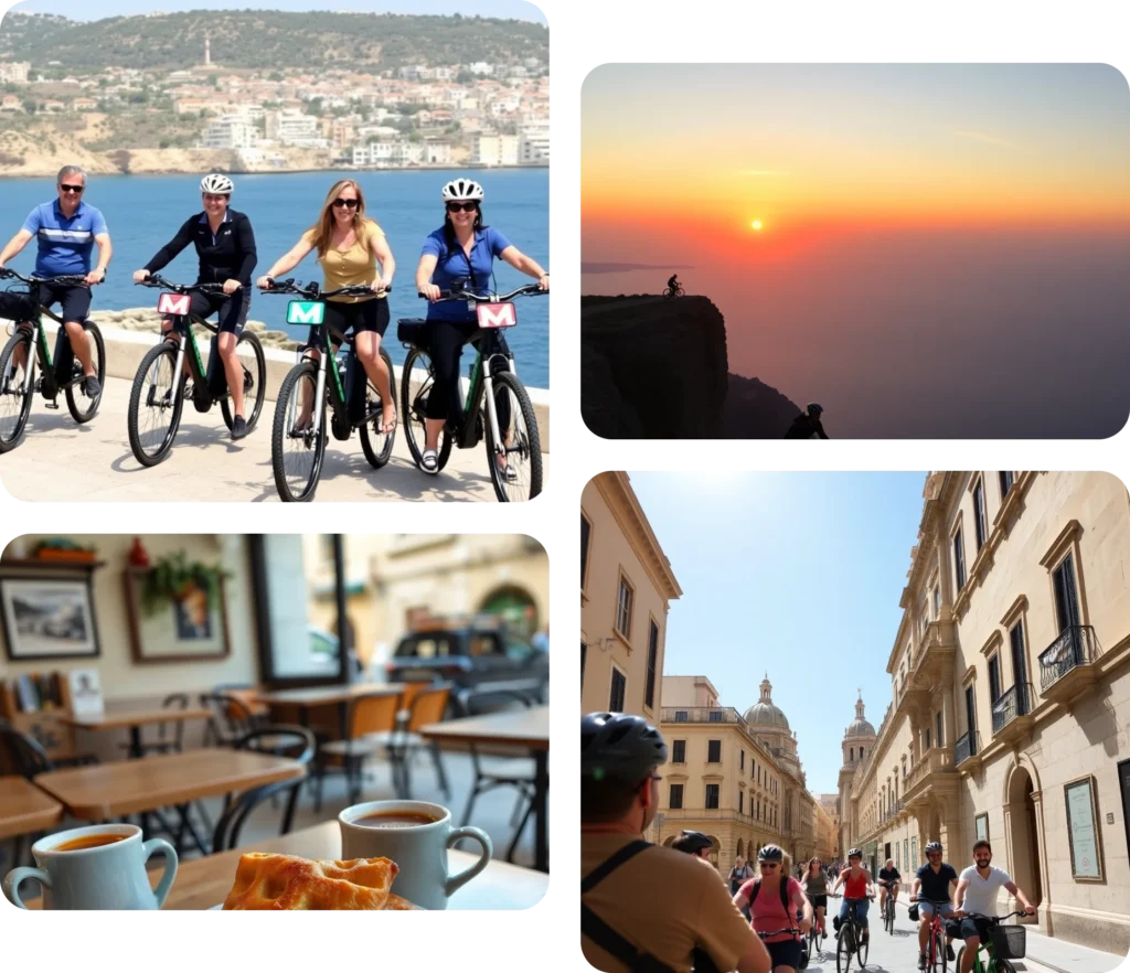 Join our expert local guides for unforgettable group adventures across Malta. From sunrise coastal rides to historic city tours and sunset cliff experiences.